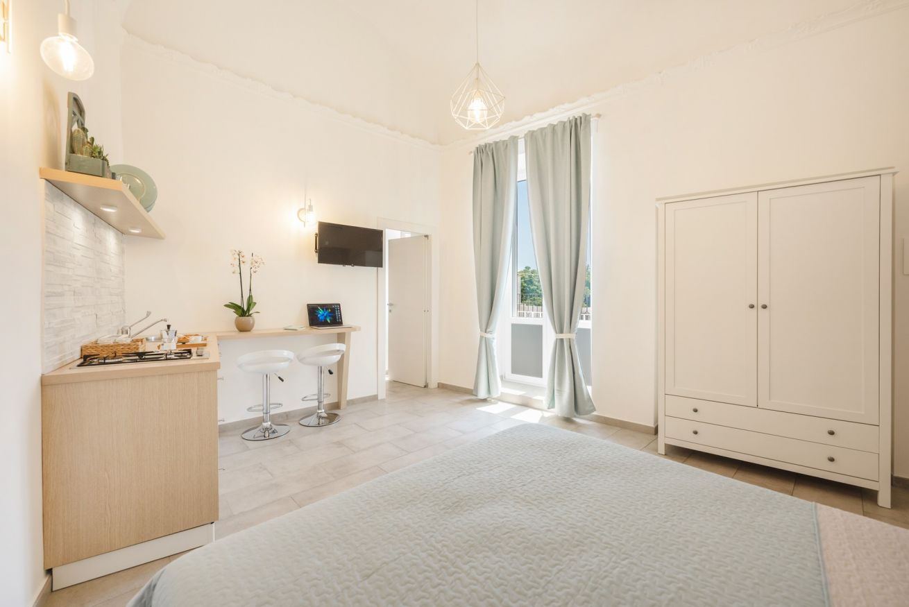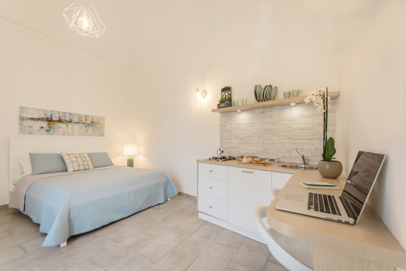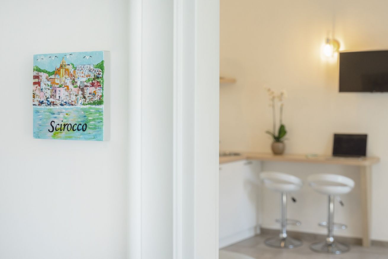 Come il caldo vento del sud, il monolocale Scirocco è qui per offrirvi una vacanza che unisca l’esotico sud e il calore di una vacanza in coppia o tra amici. Situato al secondo piano, l’appartamento è molto luminoso grazie all’alto balcone e all’alto soffitto a volta e si presenta dotato di tutti i comfort: letto matrimoniale (con materasso memory foam), cucina attrezzata, bagno privato, phon, aria condizionata, wi-fi gratuito, biancheria da letto e asciugamani.