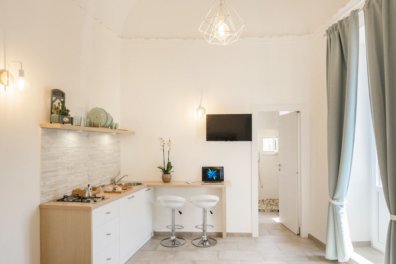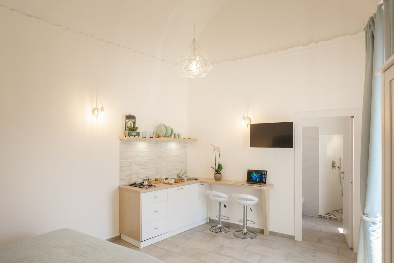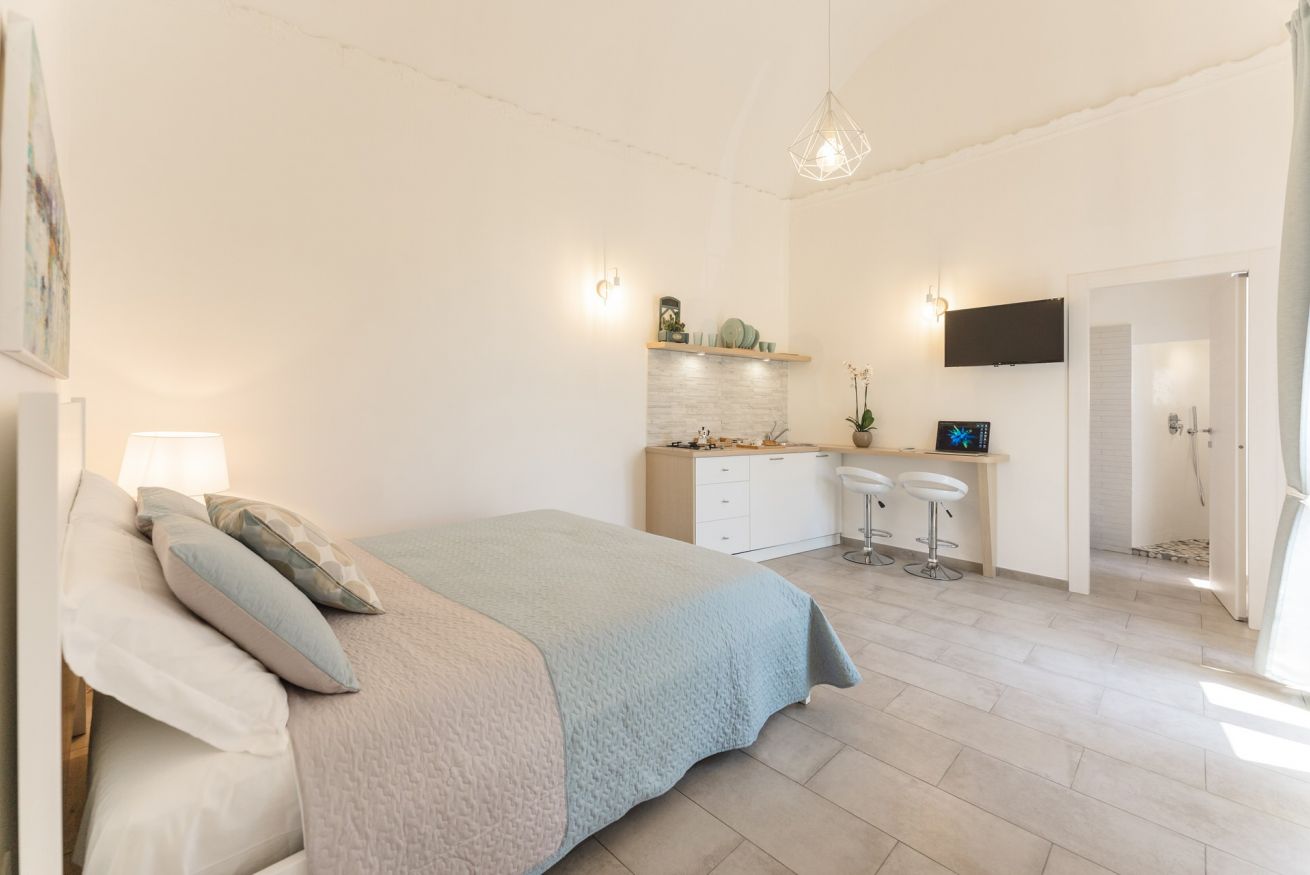 Come il caldo vento del sud, il monolocale Scirocco è qui per offrirvi una vacanza che unisca l’esotico sud e il calore di una vacanza in coppia o tra amici. Situato al secondo piano, l’appartamento è molto luminoso grazie all’alto balcone e all’alto soffitto a volta e si presenta dotato di tutti i comfort: letto matrimoniale (con materasso memory foam), cucina attrezzata, bagno privato, phon, aria condizionata, wi-fi gratuito, biancheria da letto e asciugamani.
